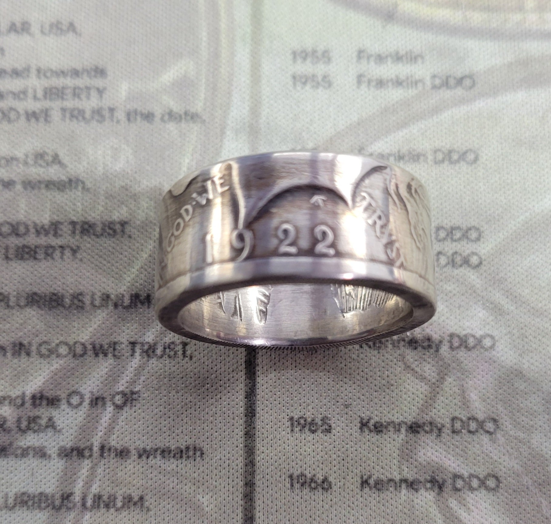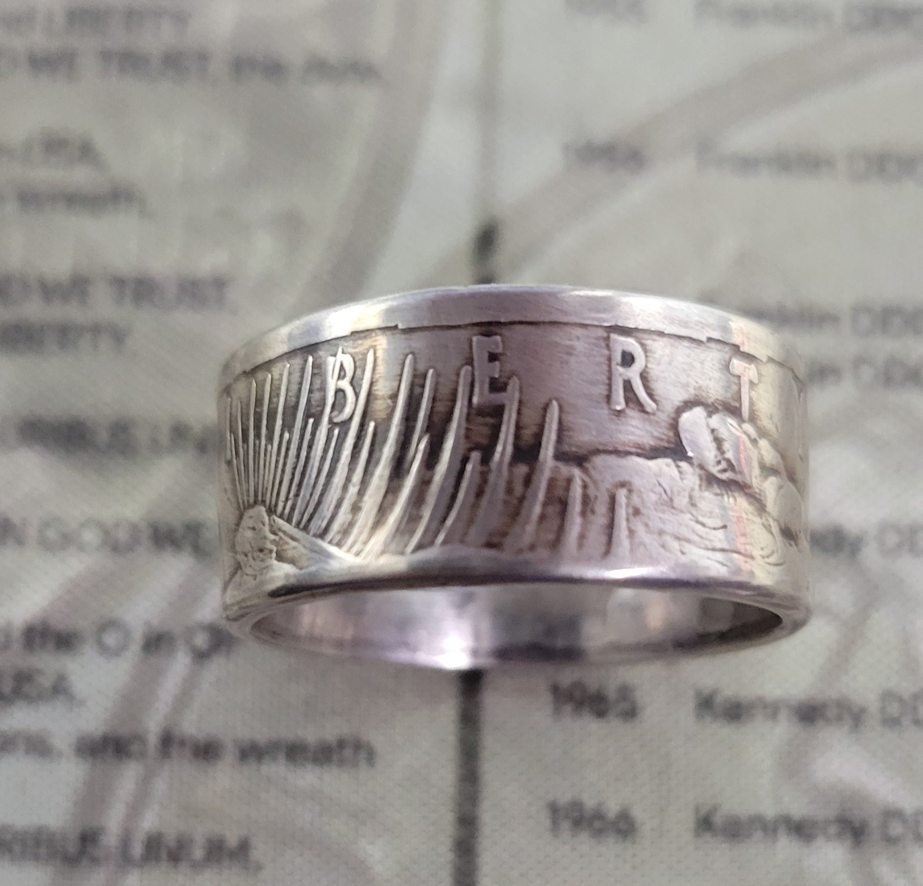 Peace Dollar coin ring. Made from an average circulated random common date 90% silver Peace Dollar